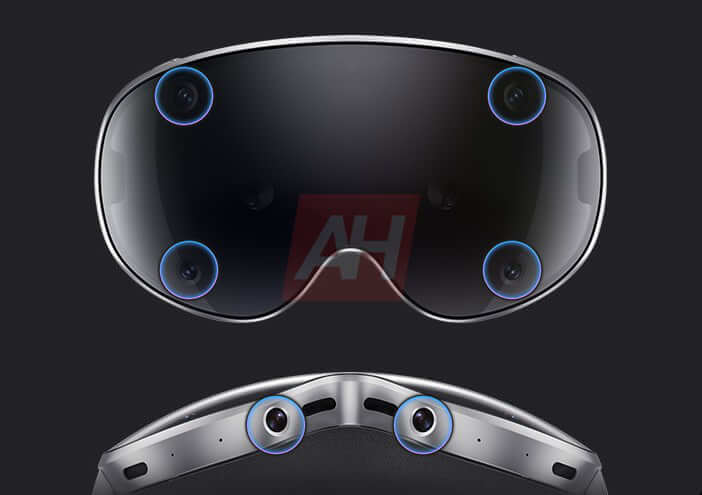 На новых изображениях видно, что из шести камер четыре расположены спереди (аналогично Quest 2 или PlayStation VR2), а две направлены вниз (как в Vision Pro). Это означает, что новинка должна распознавать жесты опущенных рук в состоянии покоя или даже ноги, но, возможно, под не очень широким углом. В навигации камерам помогает лидар. В сквозном видео — стереоскопические датчики, направленные вперёд. А для глаз есть четыре датчика на внутренней части корпуса.