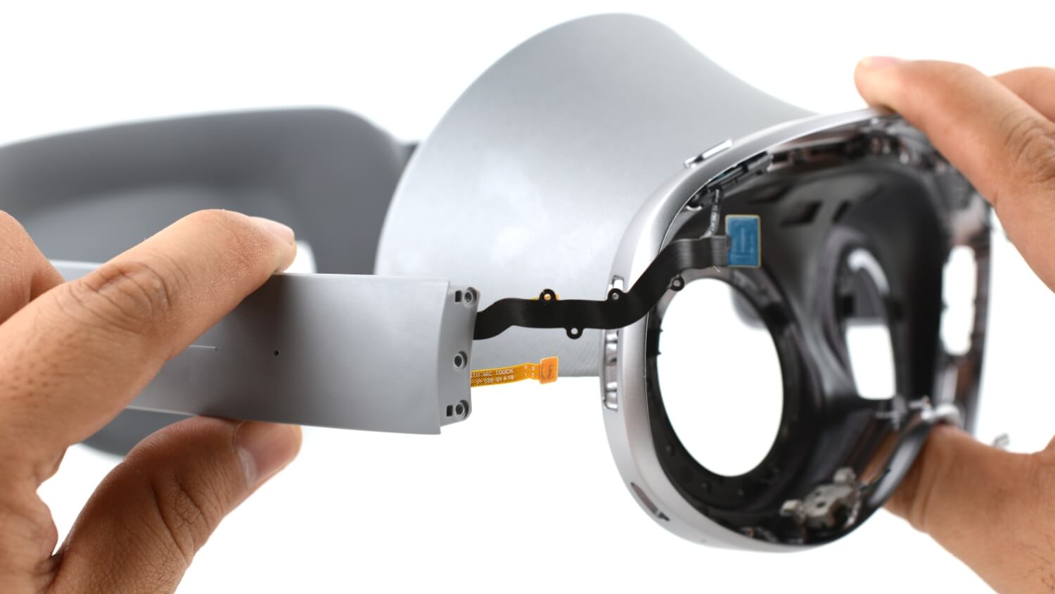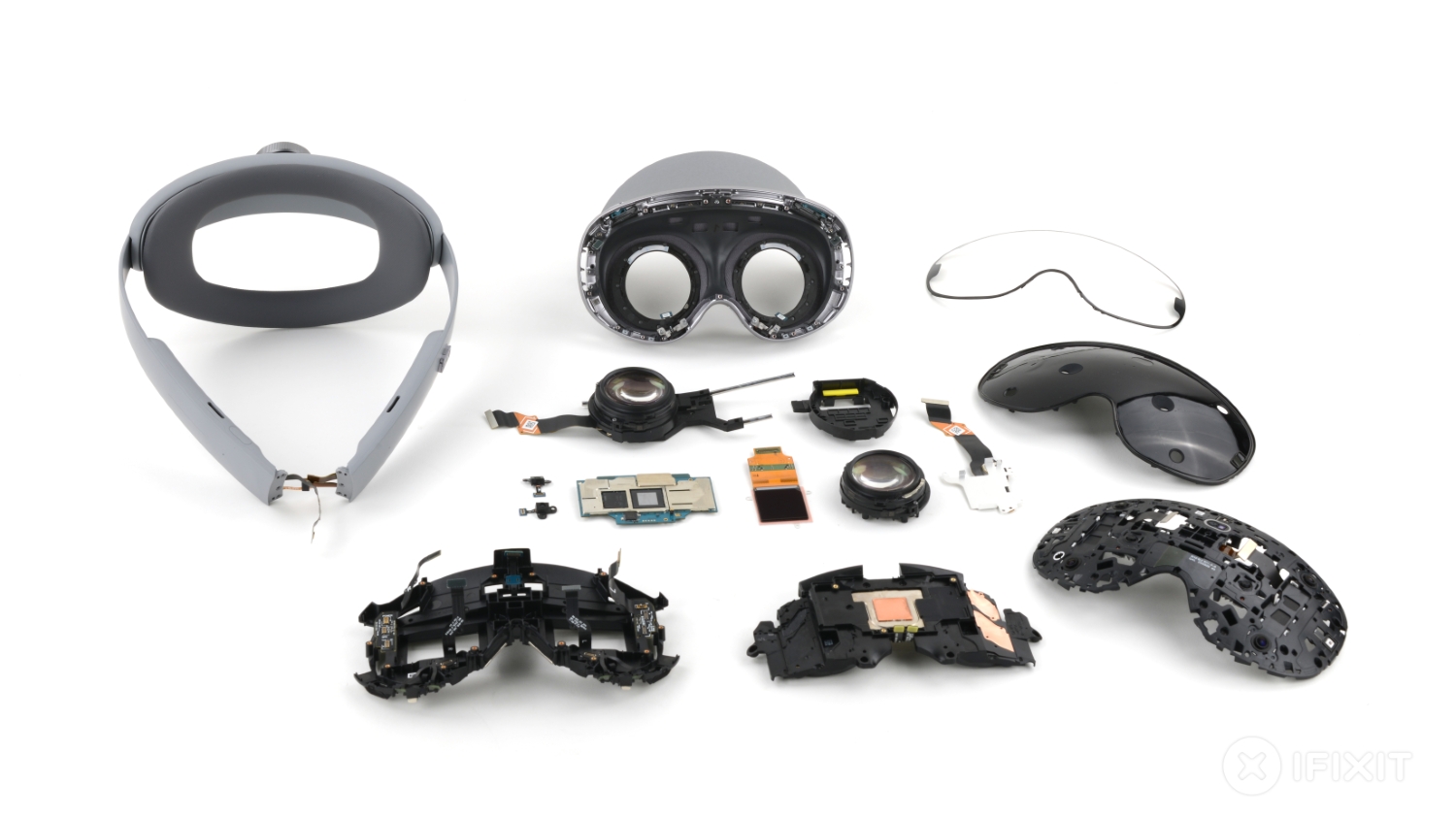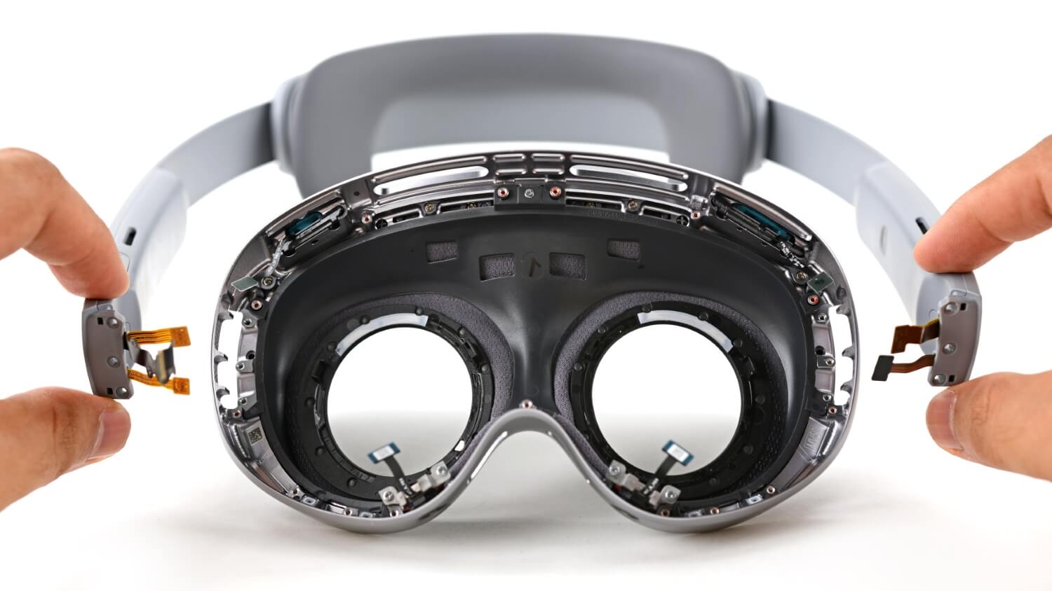 Можно снять весь блок и получить доступ к основной электронике, не снимая каждый компонент. Это важно, потому что в очках материнская плата часто скрыта под лабиринтом крошечных плат, хрупких гибких кабелей и структурных элементов, которые, кажется, собирают в порядке, обратном логике ремонта.