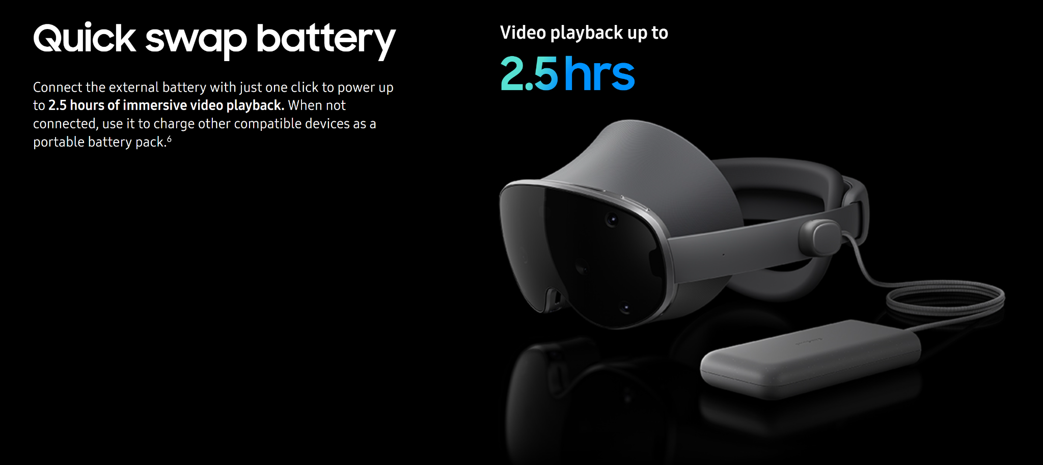 У Galaxy XR внешний аккумулятор, это одно из самых важных решений во всей конструкции. Samsung указывает вес очков в 545 граммов, а отдельной батареи — в 302 грамма. Вместе эти части трудно было бы назвать удобными из-за монструозного веса. Но разделение сократило нагрузку на голову и лицо, а батарею теперь можно заменить, не вскрывая очки. Samsung сама позиционирует её как «быстросменную».