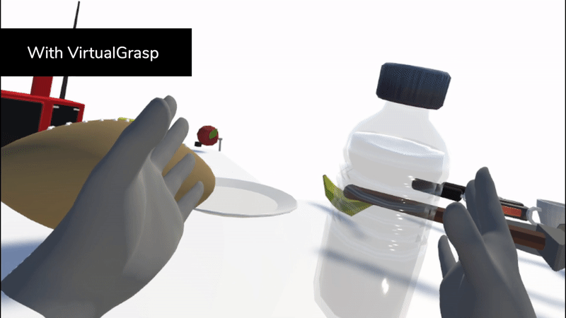 VirtualGrasp использует облачный анализ данных для понимания объектов, способов их захвата и использования. Компания обещает экономить разработчикам многие часы ручной работы при создании естественно выглядящих захватов и толчков одной и двумя руками, благодаря возможности их добавления путём простого перетаскивания из заготовок. Для достижения целевого эффекта объекты придётся запекать.