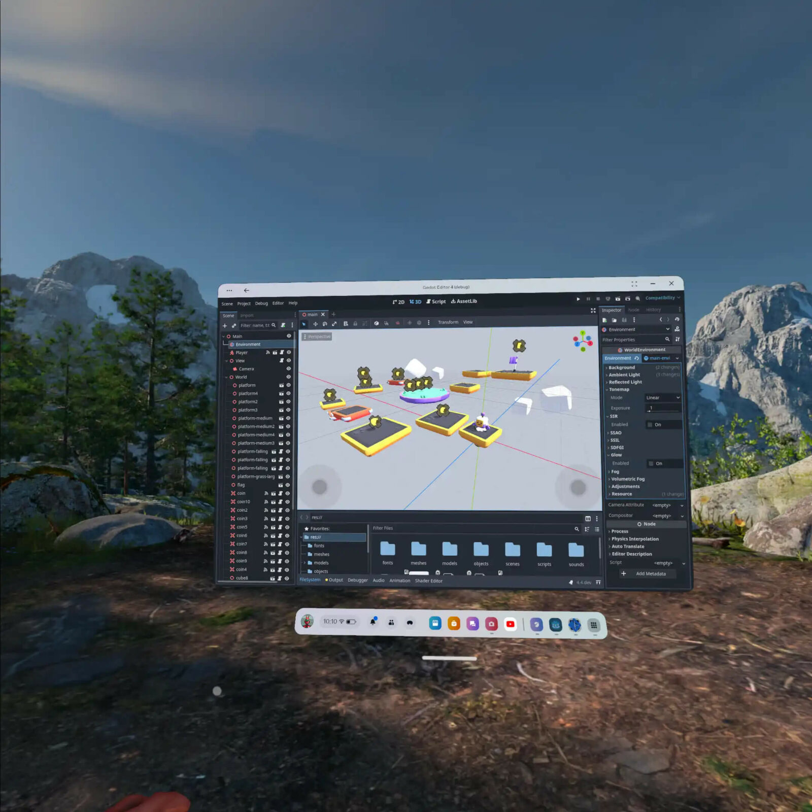 Направление следующего шага помогла сделать Meta*. Её гранты при поддержке студии W4 Games помогли завершить работу по интеграции OpenXR, которая шла несколько лет. И теперь Godot Editor доступен в магазине Horizon Store для Quest 3 и Quest Pro под управлением Horizon OS с 69 версии — из-за появившейся в ней многозадачности. Это ранняя версия ПО, но она уже сейчас позволяет создавать 2D- и 3D-приложения на мобильных очках.