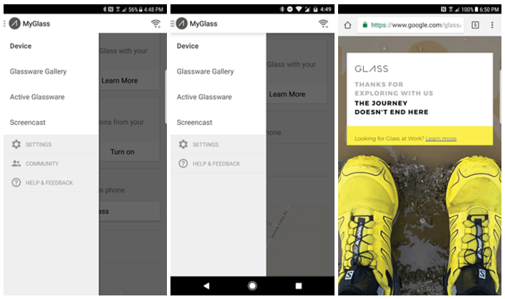 MyGlass — это приложение для Android смартфонов, которое позволяет пользователям управлять с них смарт-очками Google Glass. В последний раз оно обновлялось в конце 2014 года и стало молчаливым свидетельством увядания самого громкого проекта за всю историю нательной электроники. В 2014, 2015 и 2016 годах Google переживала реструктуризацию, которая сделала компанию частью холдинга Alphabet.