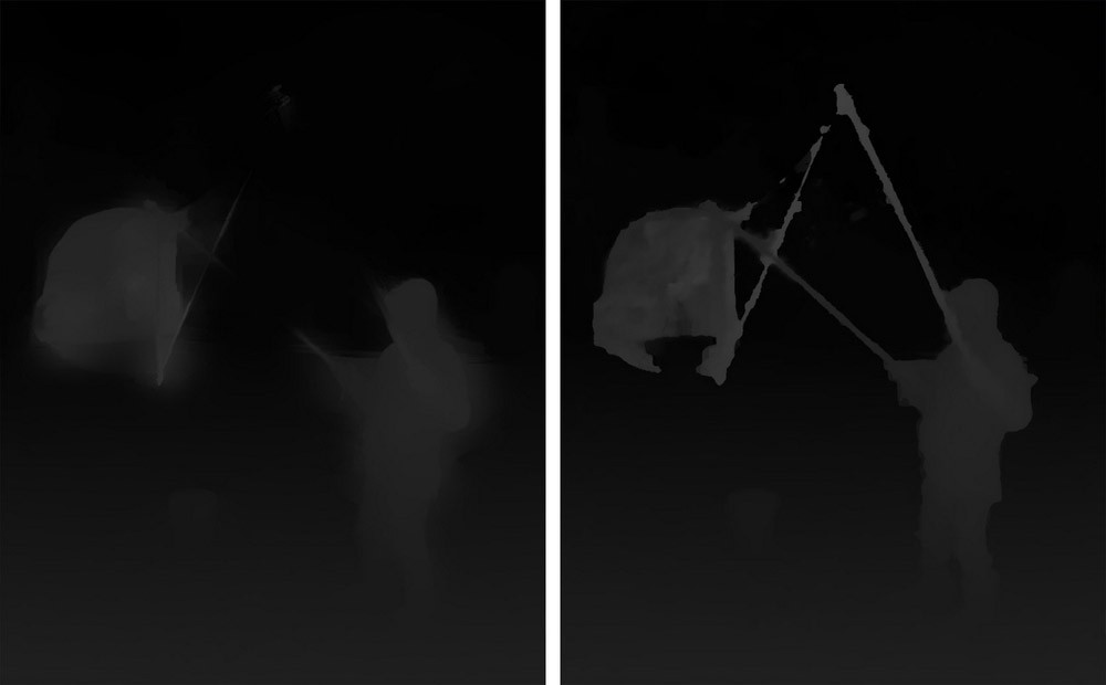 Карта глубины метода Standard слева и High Quality справа (более яркие области ближе к камере)