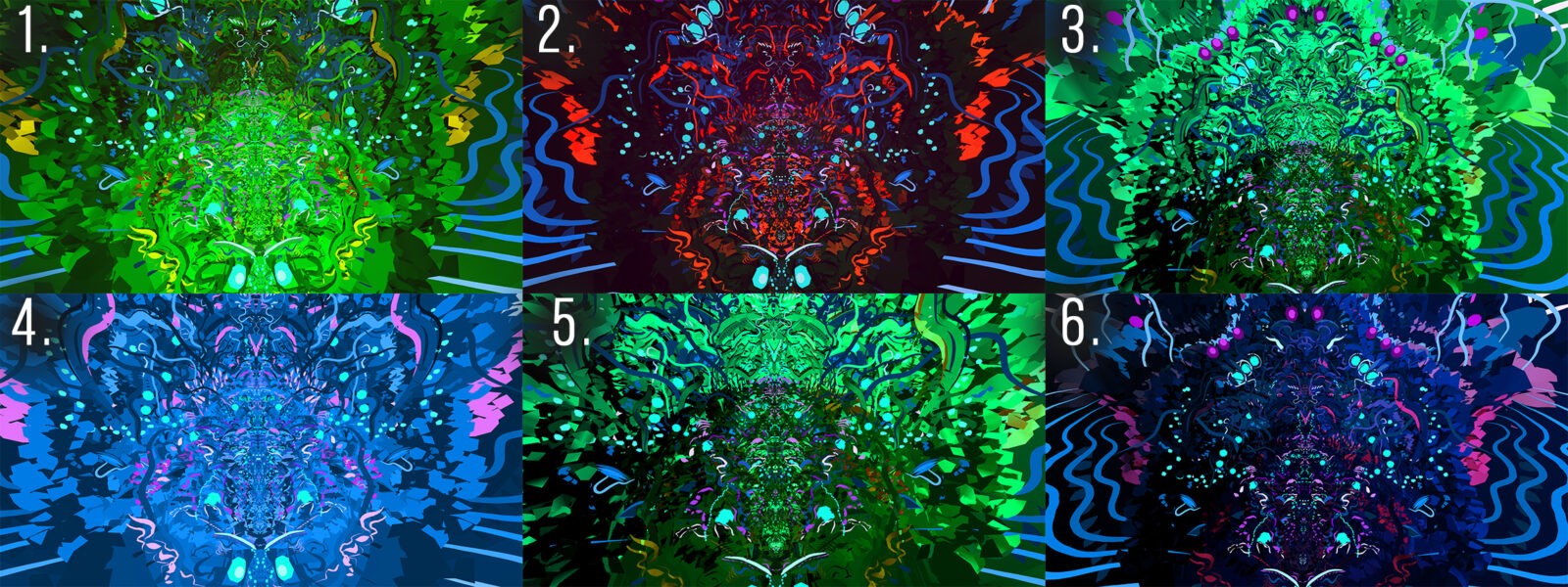 Эти панели также дают отличные инструменты коррекции цвета. На рисунке ниже пользователь объединил шесть снимков одной и той же сцены с шестью различными настройками окружения.