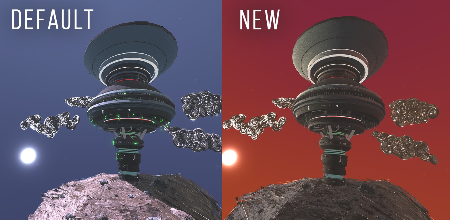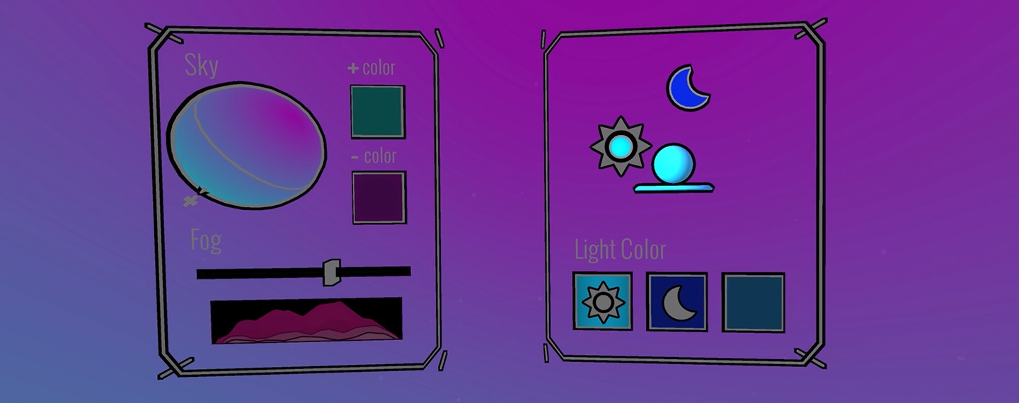Добавлена панель настройки окружающей среды, которая позволяет менять «небо» и даже напускать туман. В настоящее время изображения неба (skybox) нельзя импортировать в сцену, но пользовательская среда может быть смешана со средой по умолчанию. Это значит, что вы, например, можете сделать небо пурпурным, оставив звёзды, или сделать яркое синее небо для стандартной горной темы.