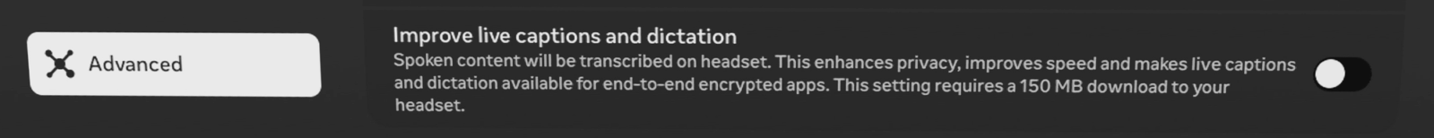 С апдейта v56 Quest могли давать субтитры в некоторых 2D-приложениях в домашнем окружении. Так можно было пользоваться Quest TV и магазином. Теперь же эта функция, повышающая доступность системы для людей с особенностями слуха, переименована в Live Captions и работает в любом приложении, даже в играх виртуальной реальности.