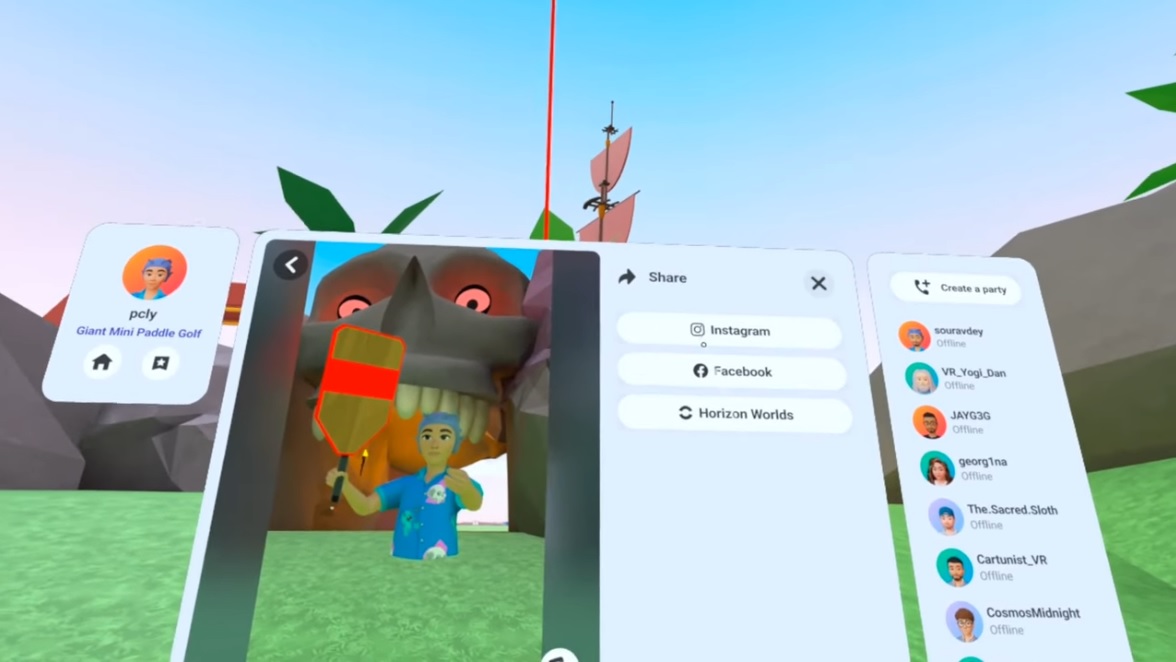 В обновлении Horizon Worlds номер 108 появилась возможность напрямую делиться фотографиями и видео из виара в Instagram и Facebook. Это долгожданная интеграция новой социальной сети в классические, которая может помочь Worlds привлечь больше внимания и к себе, и к очкам Quest, для которых она остаётся эксклюзивом.