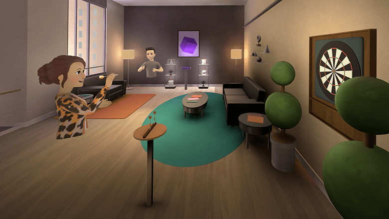 У Meta есть давние и публично высказываемые планы на социализацию виртуальных домов пользователей. В июне она обновила Личное пространство, наделив его поддержкой небольших компаний с мини-играми. Так стартовая комната стала своего рода квартирой, из которой можно в принципе не уходить для общения.