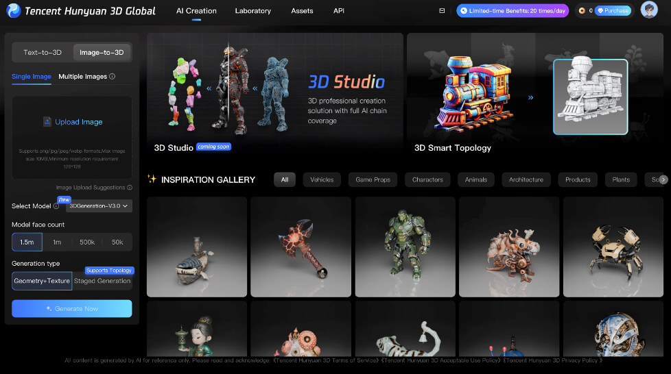 Обычные пользователи платформы получают 20 бесплатных генераций в день, а корпоративные пользователи с доступом через API в Tencent Cloud — 200 бесплатных попыток.