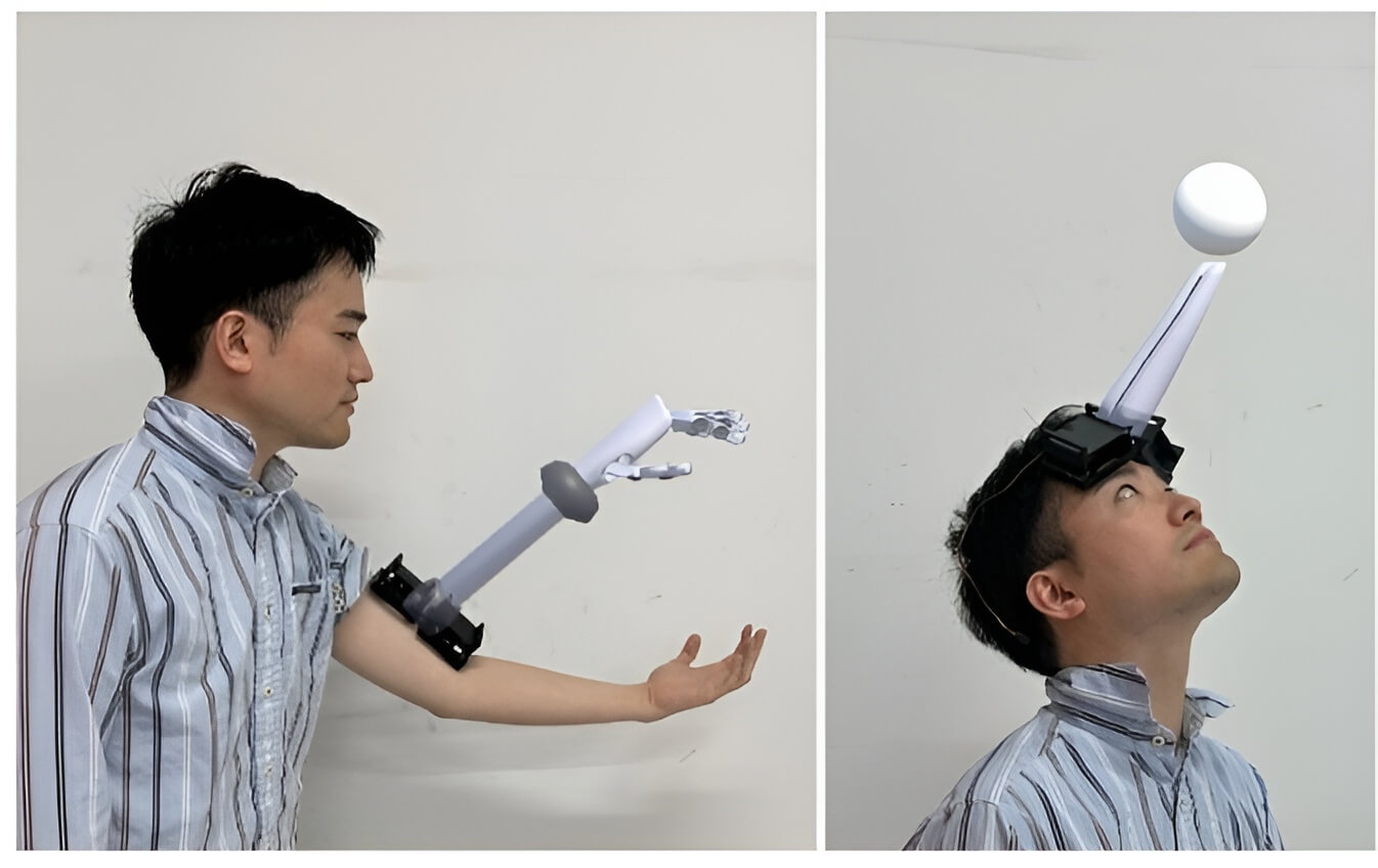 Исследовательская группа Токийского университета и Университета Саара в Германии представила технологию, которая позволяет человеку интуитивно ощущать положение и движение дополнительных виртуальных частей тела, таких как третья рука, хвост или крылья, без опоры на зрительное восприятие.