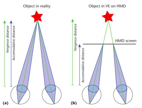Системы отображения виртуальной и дополненной реальности должны представлять мир в трёх измерениях. Поле обзора должно быть достаточно большим, чтобы создать эффект погружения, то есть около 100° или больше. В то же время дисплей должен отображать диапазон глубины, который простирается от бесконечно большого расстояния до длины руки. Большинство очков с фиксированным фокусом не могут представить чётко сфокусированное изображение в полном диапазоне, и, кроме того, из-за конфликта вергенции и аккомодации просмотр 3D-стерео в этом диапазоне может вызвать головную боль, тошноту и общий дискомфорт.