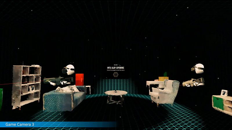 Залу, наполненному людьми в шлемах, как на недавней конференции Facebook, показывали различный контент, в числе которого было потоковое видео с платформы Voke, которую Intel поглотила в 2016 году. Представители компании воспользовались случаем и анонсировали релиз Voke для Rift и Vive (сейчас она доступна лишь пользователям Gear VR). Далее была показана многопользовательская игра с управлением через движения тела и сканирование реального окружения для создания виртуальной локации на основе полученной модели.
