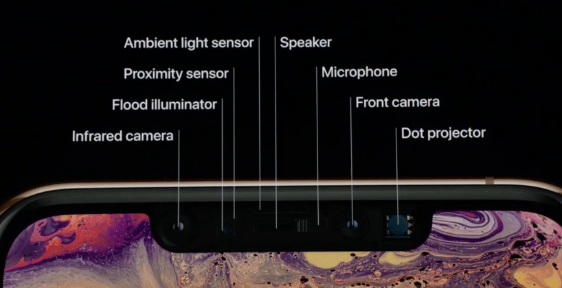 Теперь — только «безрамочность» и разблокировка с помощью распознавания лиц модулем TrueDepth. Да, как и предполагалось, дактилоскоп или сканер отпечатков пальцев во флагманах больше не актуален и заменён обкатанным на iPhone X модулем на фронтальной панели смартфона с обычной камерой, лазерным проектором облака точек и инфракрасной камерой для их считывания. Две последние детали образуют времяпролётный датчик. Он распознаёт время, за которое отражённый свет проектора возвращается в ИК-камеру, а процессоры на основе этих данных строят трёхмерную картину окружения.