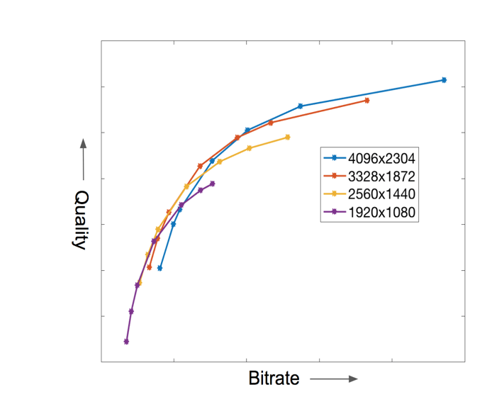 Технология CABE улучшает нынешнюю фиксированную лестницу для потоковой передачи с адаптивным битрейтом. Ранее различные выходные потоки генерировались через предопределённый набор представлений или фиксированную лестницу, которая на основе пропускной способности и возможностей устройства выдавала в качестве от 720p на 30 к/с до 4K на 60 к/с моно- или стереовидео виртуальной реальности со скоростью передачи от 1 до 60 Мбит/с. С помощью нового алгоритма CABE лестница битрейта оптимизирована под каждую единицу контента, опубликованную на платформе Jaunt XR. В результате наши пользователи могут получать высококачественный контент со стереозвуком с более низким битрейтом, одновременно сокращая расходы на хранение и сеть дистрибуции для Jaunt и наших партнёров-издателей.