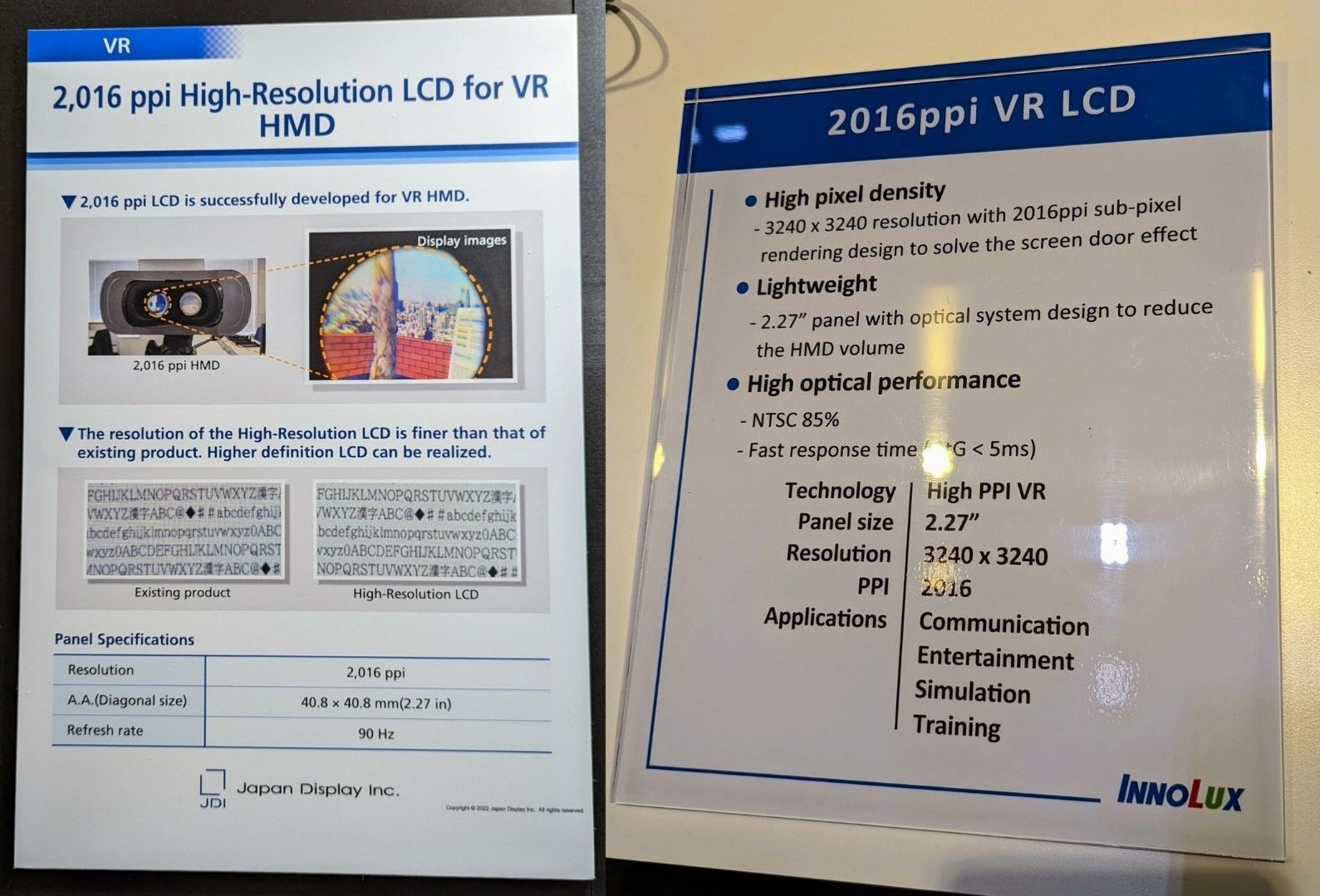 Japan Display Inc., один из крупнейших в мире поставщиков дисплеев, созданный 10 лет назад в результате слияния подразделений по производству ЖК-дисплеев Sony, Toshiba и Hitachi, и Innolux, крупнейший тайваньский производитель ЖК-дисплеев, привезли на DisplayWeek 2022 конкурирующие продукты для очков виртуальной реальности. Направленность эту стоит считать условной, поскольку Meta* и её конкуренты скоро выпустят очки, одинаково способные на виар и смешивание реальностей.