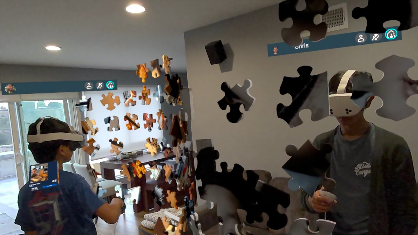 Пазлы смешанной реальности Jigsaw Night дебютировали на Quest с набором интересных функций, таких как совместное составление картин несколькими пользователями очков дистанционно или в одном физическом пространстве, одновременная сборка нескольких головоломок, выбор между отслеживанием рук и контроллерами, настройка количества и формы деталей.