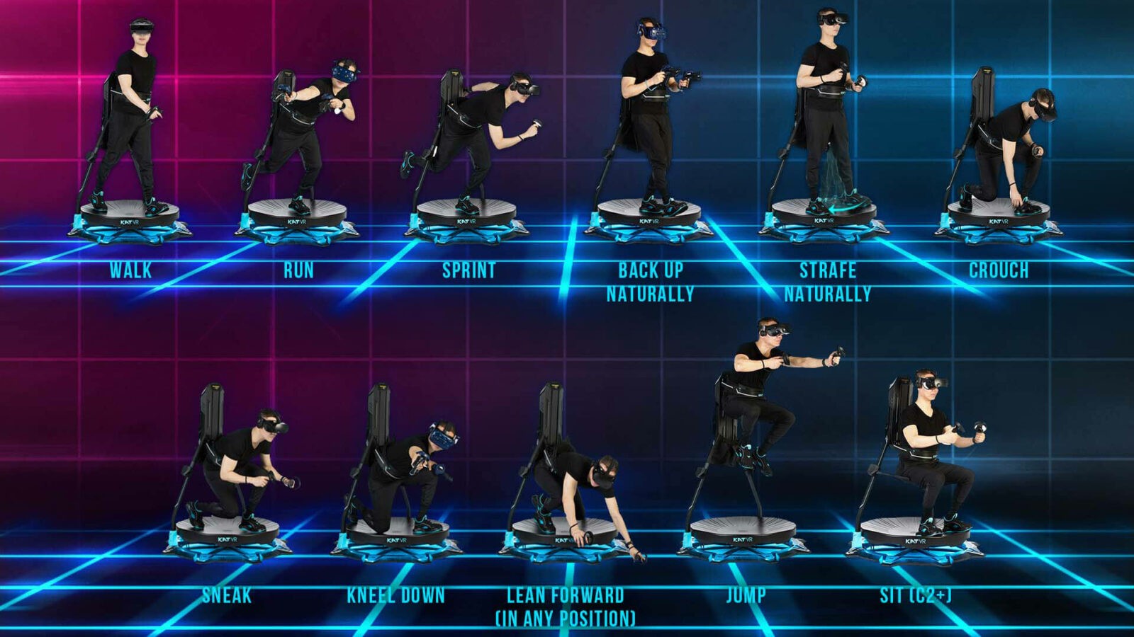 Как и KAT Walk C, которая вышла на Kickstarter в 2020 году, C2 позволяет пользователям ходить на месте с помощью вогнутой поверхности с низким коэффициентом трения и специальной скользящей по ней обуви. Игроки могут бегать, прыгать, приседать, наклоняться из стороны в сторону и вперёд. Особенностями новинки стали улучшенный трекинг стопы и более качественная обувь. Вес — около 54 килограммов.