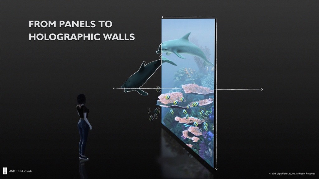 Первые известия о стартапе Light Field Lab из Бухты Сан-Франциско появились два года назад. Его команда хочет создать голографические экраны, которые позволят нам видеть «объёмное» 3D без специальных очков. Это не просто эффект от двухмерной поверхности экрана, а возможность физически перемещаться относительно изображения и видеть его со всех сторон, наблюдая за изменениями с правильной перспективой. По задумке, зритель будет лицезреть, как контент парит в воздухе.