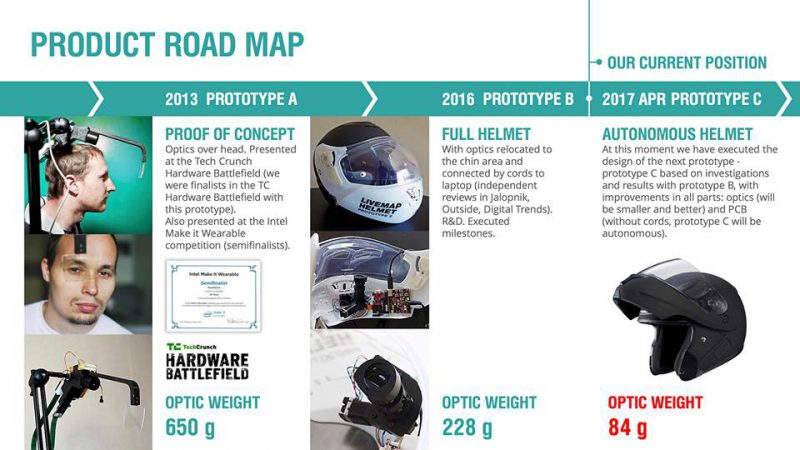 На сцене AWE появится прототип «С», автономное устройство с серийной оптикой. О технических достижениях этого прототипа мы рассказали в недавнем материале. Согласно планам LiveMap, следующий прототип выйдет осенью 2017 года; в его состав войдут модули GPS и LTE, а также камера с разрешением 4K. Пятая, финальная версия шлема будет представлена на CES 2018.