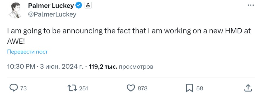 Палмер Лаки работает над новыми очками и собирается рассказать об этом на выставке Augmented World Expo 2024, которая откроется в американском городе Лонг-Бич, Калифорния, 18 июня. Основатель компании Oculus VR, продавший её Facebook* и не сумевший уйти без скандала, с тех пор делился лишь одним шутливым проектом очков, которые могли бы убить пользователи по-настоящему при виртуальной смерти. Станет ли новинка шуткой, пока неизвестно.