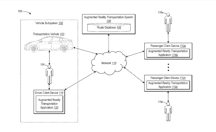 К примеру, транспортная система дополненной реальности анализирует историческую (подразумевается, по всей видимости, термин «статистический» — прим. ред.) информацию, чтобы определить ряд факторов, таких как: предыдущее количество посадок в заданных местах; время ожидания посадки в заданных местах; традиционно перегруженные места; места, где предыдущие пассажиры дали плохие оценки о качестве места посадки; места, в которых предыдущие пассажиры обычно просили не подбирать их; места, в которых запрещено забирать пассажиров, запрещено парковаться, которые слишком загружены для парковки, небезопасны или иным образом нежелательны в качестве места посадки.
