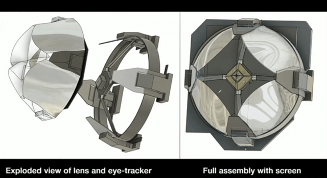 Линза из четырёх призм также сумела скрыть находящуюся прямо в центре поля зрения камеру слежения за глазами. Этот фокус позволяет повысить качество окулографического трекинга, не мешая пользователю.