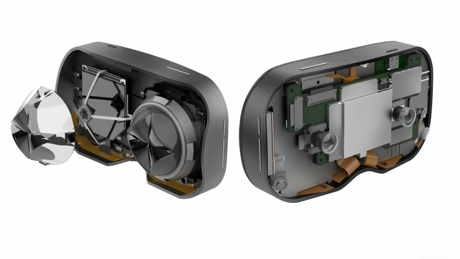 Разработчики говорят, что компактный дизайн очков во многом обусловлен новой катадиоптрической оптикой, которая не только уменьшает фокусное расстояние между линзами и дисплеем, но и позволяет скрытно разместить трекеры глаз в центре оптической системы.