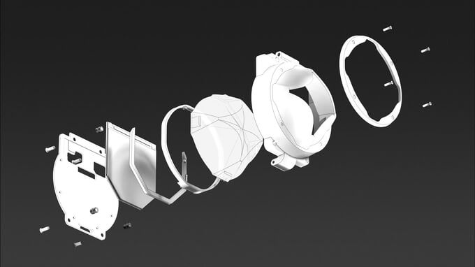 Линза, одна из самых интересных особенностей R1, представляет собой составную катадиоптрическую призму произвольной формы. Она позволила минимизировать расстояние между оптикой и дисплеем, уменьшив в итоге размеры корпуса. Аккумулятор для лучшей развесовки расположили у затылка пользователя, дополнительно снизив вес фронтальной части. Общий вес вместе со шторкой для виара составляет около 700 граммов.