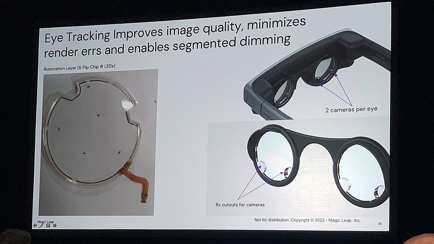 Пока не ясно, будут ли у Magic Leap 2 такие же варифокальные возможности, как у ML1. Учитывая слайд Кёртиса (в начале), который показывает по одному волноводу для красного, зелёного и синего цветов (вместо двух для каждого цвета, как в ML1), от этой функции могли отказаться.