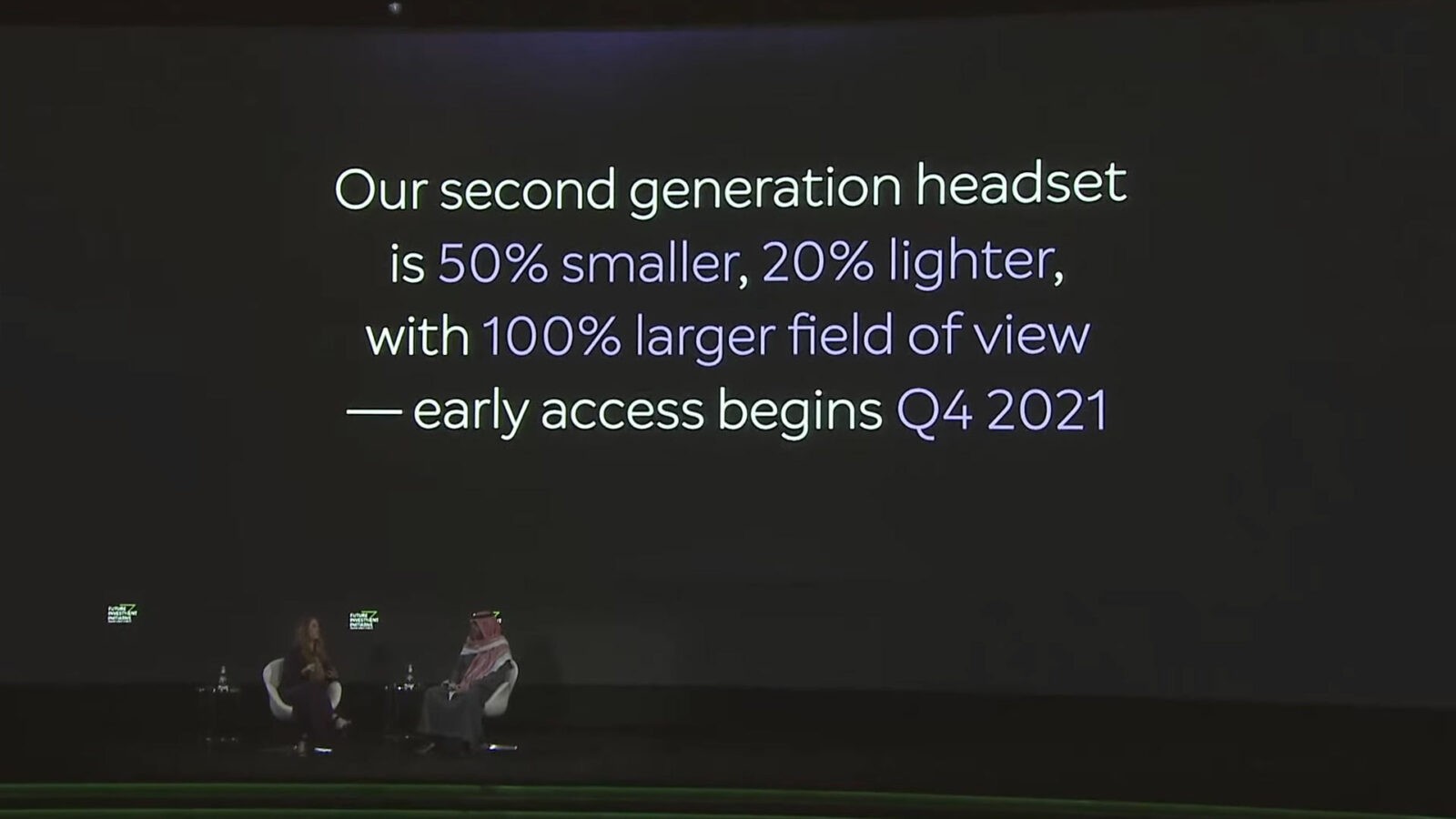 Слайд с выступления Джонсон показал, что ранняя версия новинки выйдет в 4 квартале 2021 года. Очки будут «на 50% меньше, на 20% легче и получат на 100% больше поля зрения».