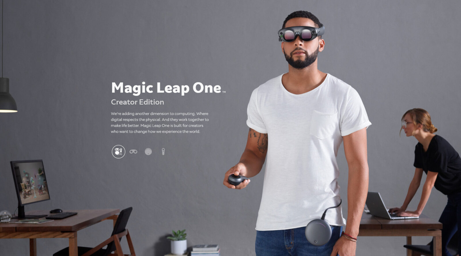 Magic Leap представила компьютер Magic Leap One в версии Creator Edition, предназначенной для разработчиков программного обеспечения и аксессуаров. Новинка состоит из трёх частей — очков Lightwear, вычислительного блока Lightpack (собственно компьютера) и контроллера Control.