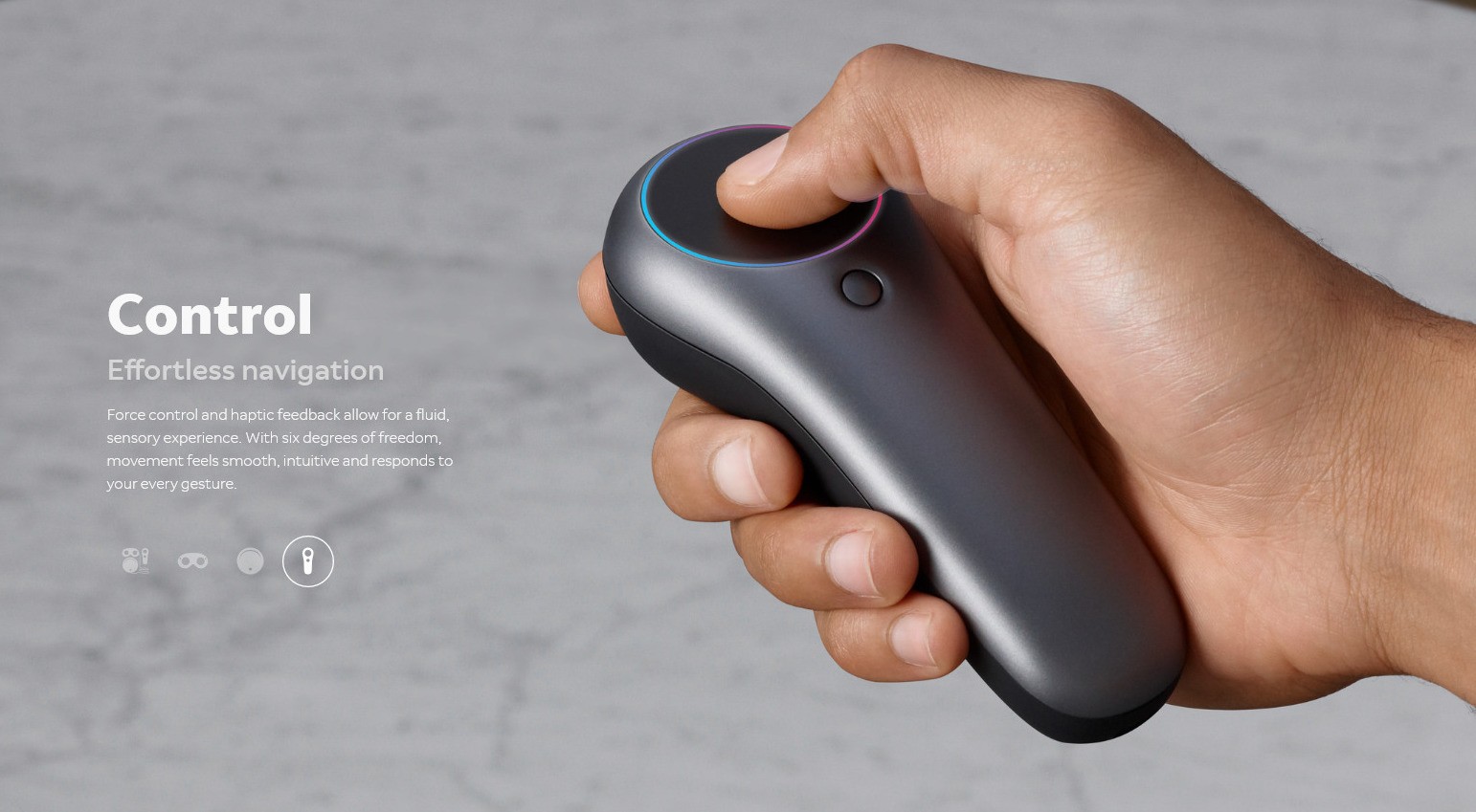 Контроллер в единственном числе напоминает мобильные решения от Google или Samsung больше, чем контроллеры от HTC Vive, Oculus Rift или очков для Windows. Большая сенсорная панель соседствует с кнопкой и курком. Обтекаемый корпус на рендерах не снабжён шнурком — если так будет и с настоящим устройством, из контроллера получится дорогой и, вероятно, одноразовый метательный снаряд.