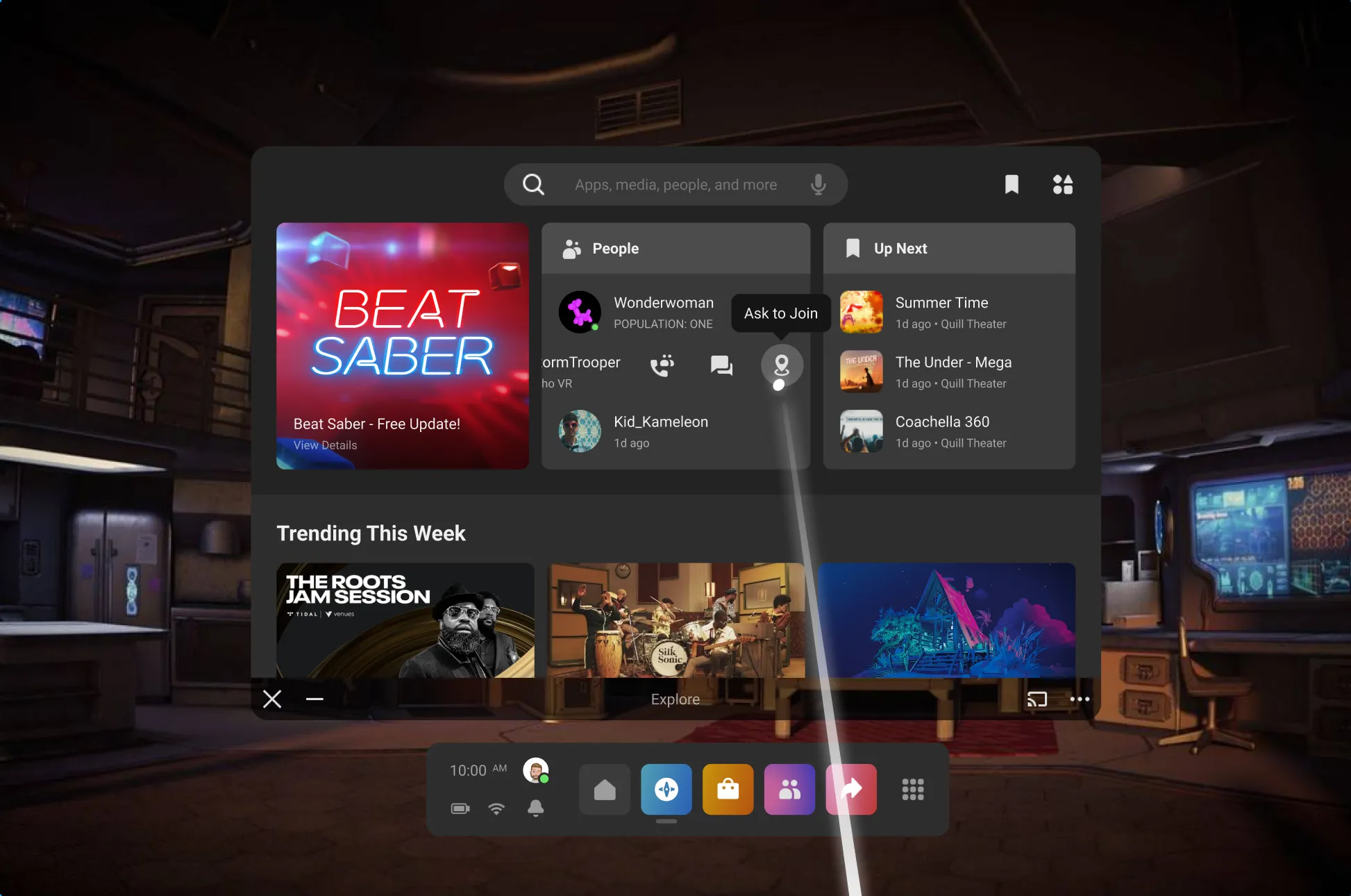 В интерфейсе Quest будет раздел запроса на присоединение «Ask to Join», в котором игроки смогут переходить в приложения друг друга. А если у кого-то не окажется внушительного списка друзей по виару, он сможет искать людей и знакомиться с ними.