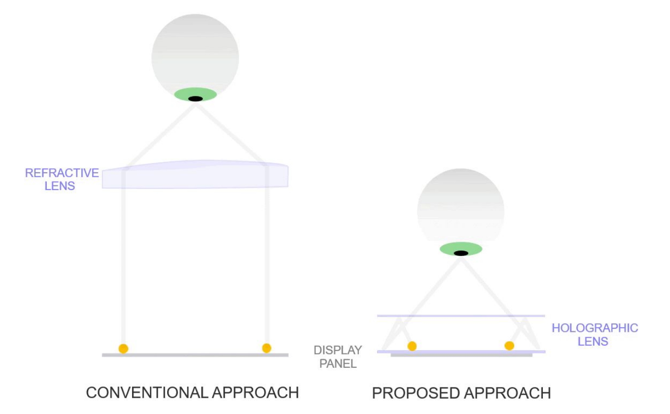 До появления новейшей волны очков с блинными линзами, таких как Quest 3, Pico 4, Beyond и Vision Pro, в большинстве устройств была обычная преломляющая оптика, что требовало относительно большого зазора между дисплеями и линзами. Он являлся основной причиной большой толщины старых продуктов, таких как Vive, Rift, Quest первых двух поколений, Valve Index и PlayStation VR (как ни странно, проблема сохранилась в PS VR2, в них линзы Френеля).