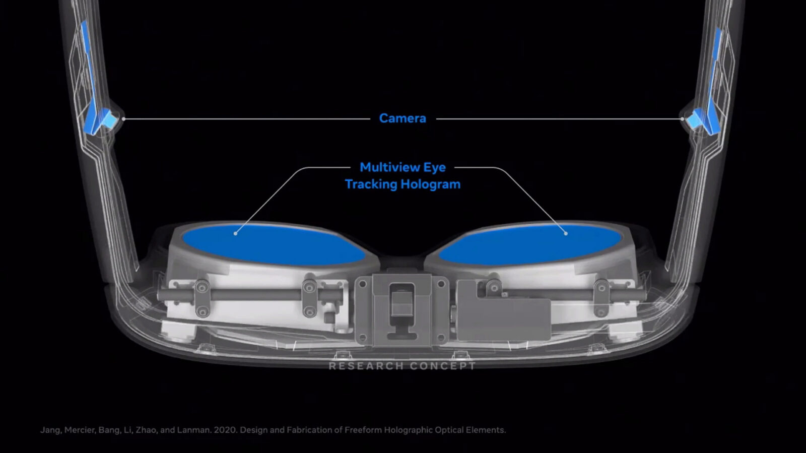 Сотрудники Reality Labs ещё в 2021 году предложили снимать глаза пользователя в трёхмерном формате и в реальном времени транслировать на дисплеи светового поля на фронтальной панели очков.