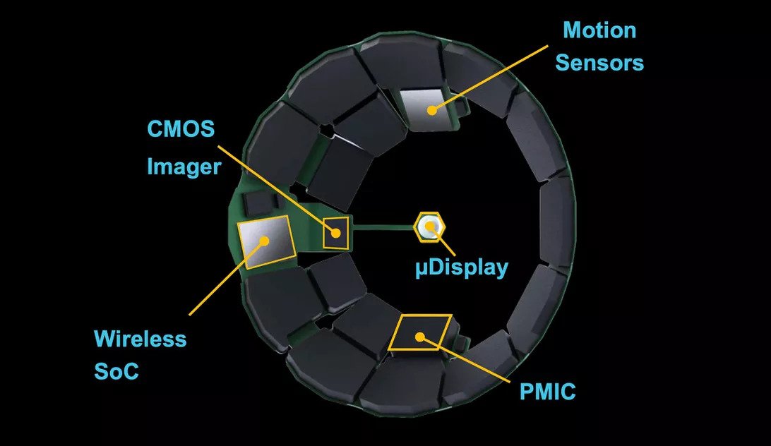 Линзы окружены электроникой, включая камеру, фиксирующую внешний мир. Компьютерный чип обрабатывает изображения, управляет дисплеем и обменивается данными с внешними устройствами, такими как телефон, по беспроводной сети. Трекер движения компенсирует движения глаза. Устройство питается от аккумулятора, который заряжается по беспроводной сети в течение ночи, как смарт-часы.