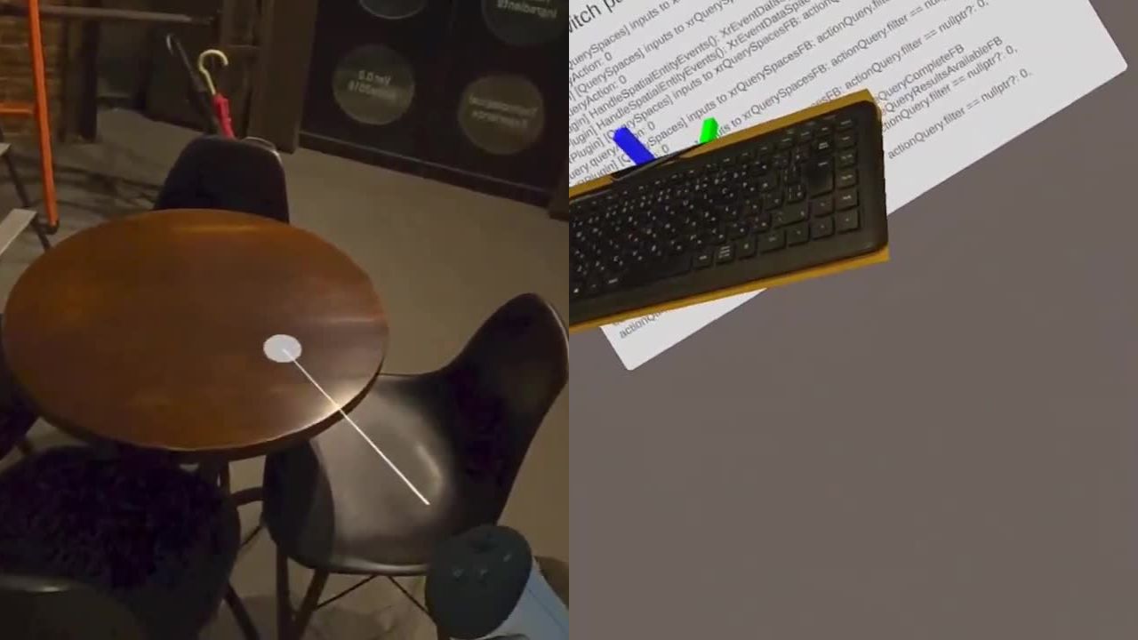 В SDK Quest много лет есть функция, которая позволяет визуализировать виртуальную версию некоторых клавиатур. Она требует отрисовки двойника каждой клавиатуры в 3D, такая попытка была проигрышной с самого начала. Поэтому в Horizon OS 71 разработчики системы добавили ​​возможность отслеживать любую клавиатуру и вырезать для неё область сквозного вида благодаря цветным камерам.