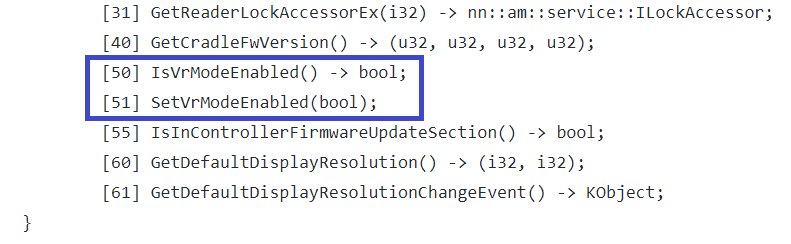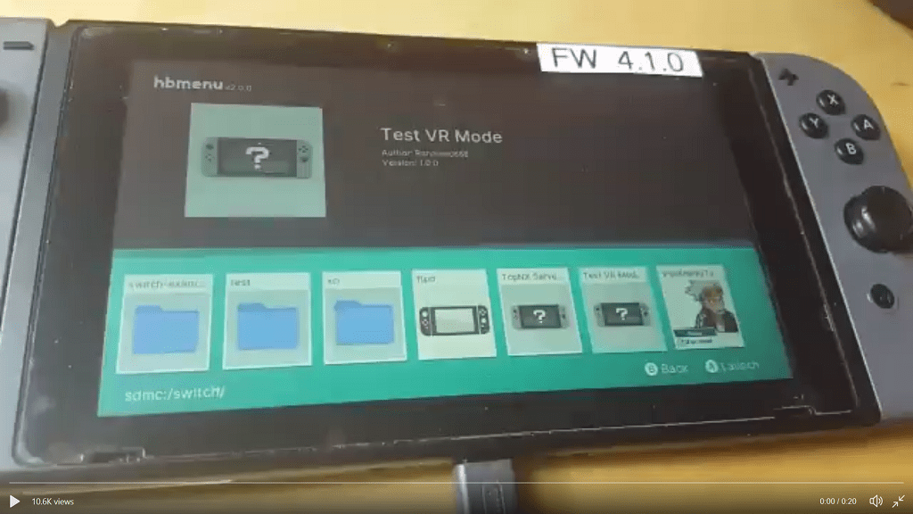 Член сообщества хакеров и моддеров с ником @random666_kys в Twitter исследовал код операционной системы Switch и наткнулся на строки с упоминанием «Тестового режима виртуальной реальности» («Test VR Mode»), который разбивает экран пополам и предлагает пользователю убрать консоль от лица перед нажатием кнопки «Закрыть».