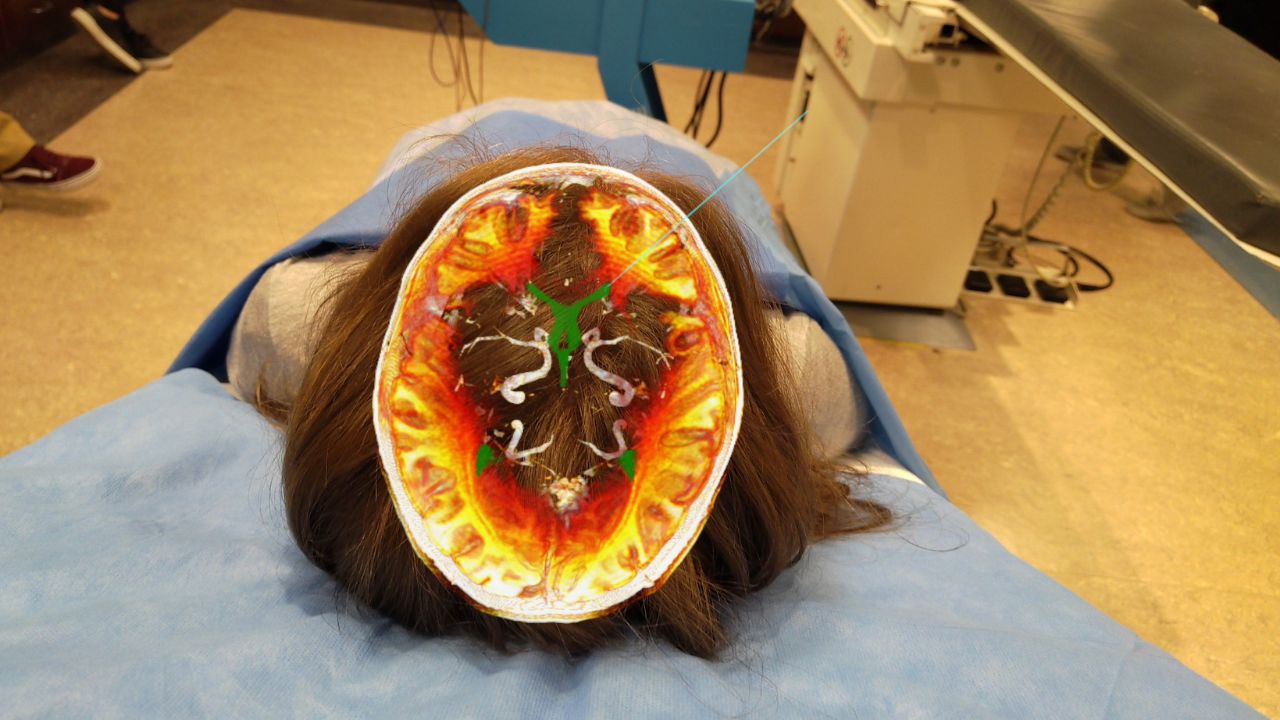 Новый случай применения VisAR стал частью более сложной и рискованной процедуры. Команда нейрохирургов, доктор Альберто Рамирес и доктор Хосе Франсиско Куэльяр, при содействии доктора Венделла Гибби из Novarad, вели биопсию злокачественной опухоли в третьем желудочке, глубоко в центре мозга.