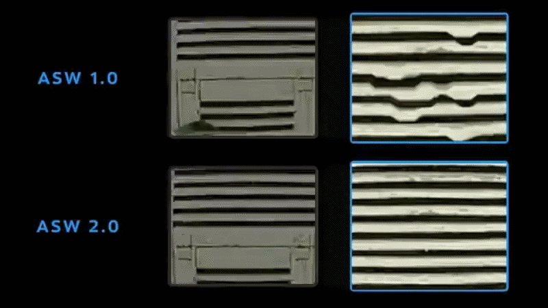 В видео выше вы можете видеть, как ASW 1.0 обманчиво полагает, что некоторые части чёрных линий должны двигаться быстрее, чем другие. Понимание глубины позволяет ASW 2.0 понять, что чёрные и белые линии являются частью одной плоскости и должны двигаться вместе; результат почти безупречен для невооружённого глаза.