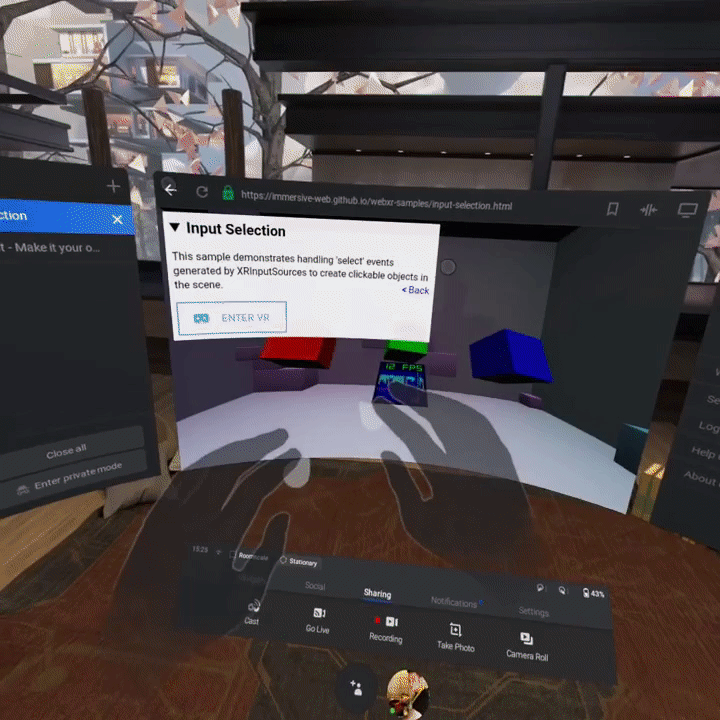 Oculus Browser обновился до версии 8.0 и получил экспериментальную поддержку отслеживания рук в Quest. Фактически, теперь вы можете работать руками без контроллеров в браузерной виртуальной реальности, что является настоящим прорывом для WebXR.