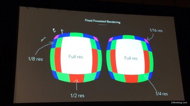 Ещё одной деталью работы Go стал фиксированный фовеальный рендеринг. Это значит, что высокую детализацию будет иметь картинка лишь в центральной области поля зрения. Фиксированность говорит об отсутствии трекинга взгляда. Если вы специально скосите глаза, то легко увидите разницу между областями высокого и низкого разрешения, но человек инстинктивно поворачивает голову по направлению взгляда, поэтому в обычных условиях недостатки такого подхода малозаметны. По крайней мере, с ними можно мириться в очках ценой $200.
