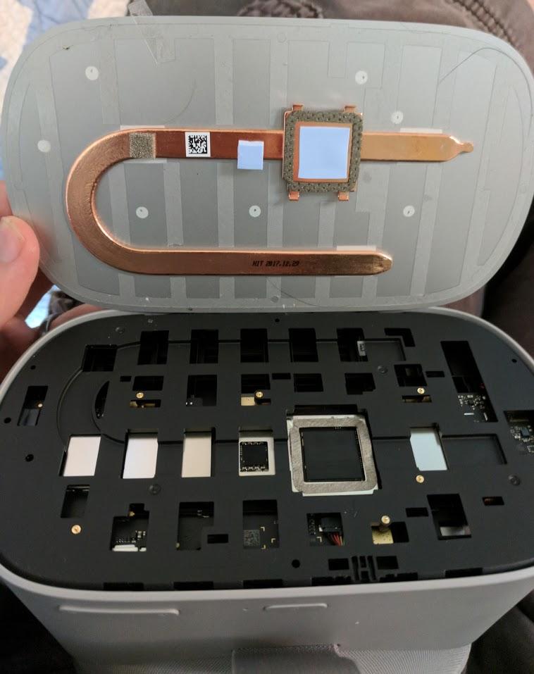 Температурное регулирование является узким местом виртуальной реальности на смартфонах. Требовательные приложения уводят аппарат в «троттлинг» в считанные минуты. Чтобы справиться с этой проблемой, в очках Go на чипе Snapdragon 821 установлена массивная тепловая трубка, а вся передняя часть корпуса превратилась в металлический радиатор.
