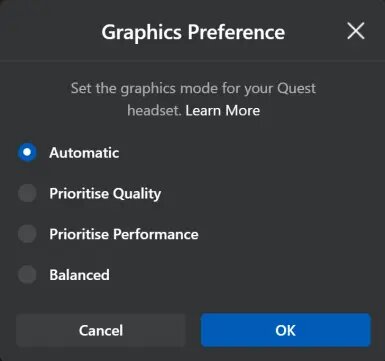 Платформа Oculus девятнадцатой сборки, доступная в публичной бета-версии, предлагает новую возможность выбора между тремя разрешениями для тех, кто использует очки Quest через соединение Link. И четвёртый вариант — положиться на автоматическую оценку вашей видеокарты.