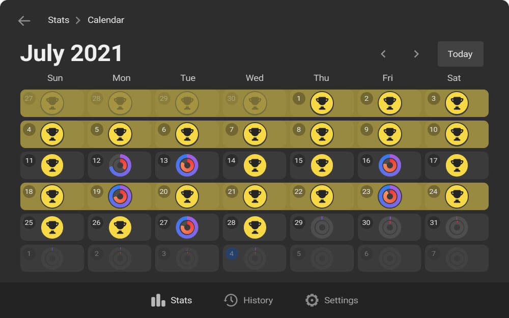 В начале работы Move спросит, сколько дней вы хотите заниматься в неделю. В календаре появятся еженедельные достижения, которые упрощают отслеживание прогресса. Интеграция с Facebook позволила Move делиться статистикой тренировок в вашем профиле Facebook, в группах, мессенджере и ленте.