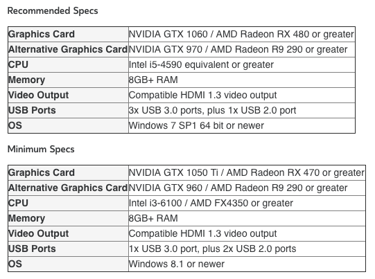 NVIDIA утверждала, что GTX 1050 Ti подходит для Rift, ещё в октябре 2016 года. Новая карта мощнее GTX 960, которая упоминалась в предыдущей версии минимальных требований с учётом Асинхронного пространственного искривления. Oculus также просит обращать внимание на требования, которые указаны авторами контента — так получится соблюсти наилучший баланс между затраченными средствами и желаемым результатом.