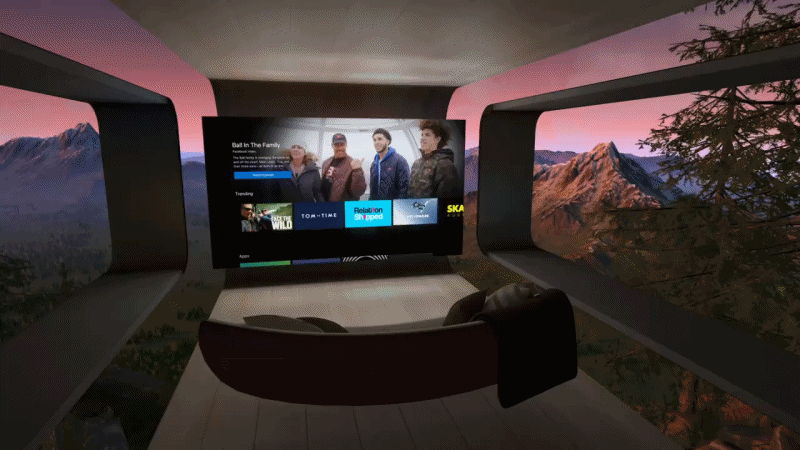 В бесплатном приложении есть виртуальный домашний кинотеатр с «эквивалентом 180-дюймового телевизора». Он предлагает доступ к нескольким сервисам потокового видео, включая платформы на основе подписки, такие как Showtime, и бесплатные услуги веб-телевидения, такие как Pluto TV, а также видео от материнской компании Oculus — Facebook.