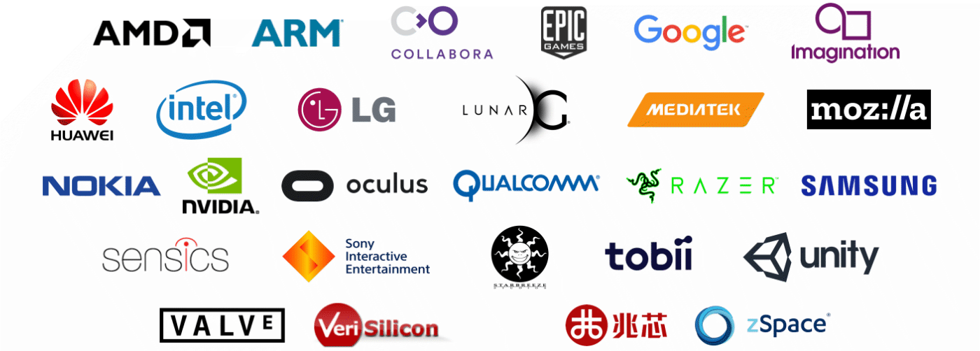 Консорциум компаний высокотехнологичной индустрии Chronos Group второе десятилетие занимается созданием открытых стандартов, таких как OpenGL, Vulcan, OpenCL, WebGL и OpenVX. На следующем изображении представлены лишь некоторые члены консорциума: