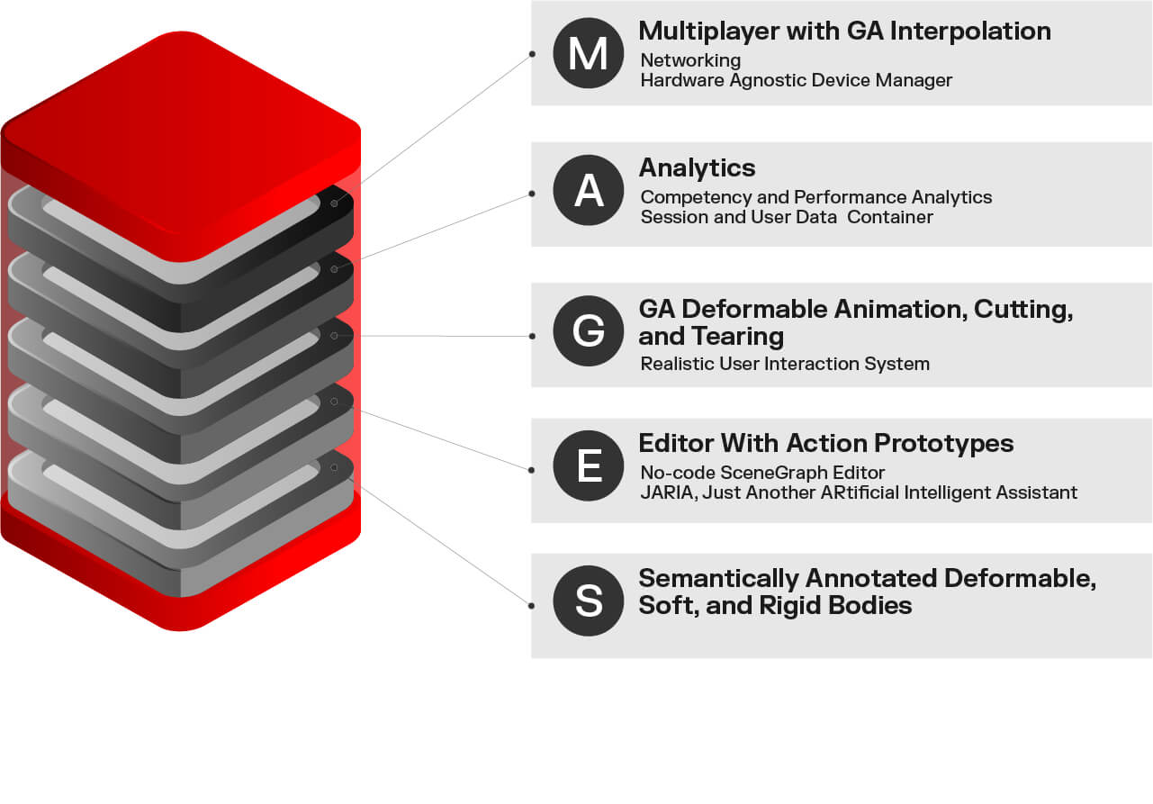 Комплекс решений под общим брендом MAGES помогает работать над пятью основными задачами: обучением, планированием, навигацией, реабилитацией и терапией. Компания сообщает о клинических доказательствах повышения медицинских навыков на 32% и снижения ошибок на 80% в хирургии, диагностике и терапии.