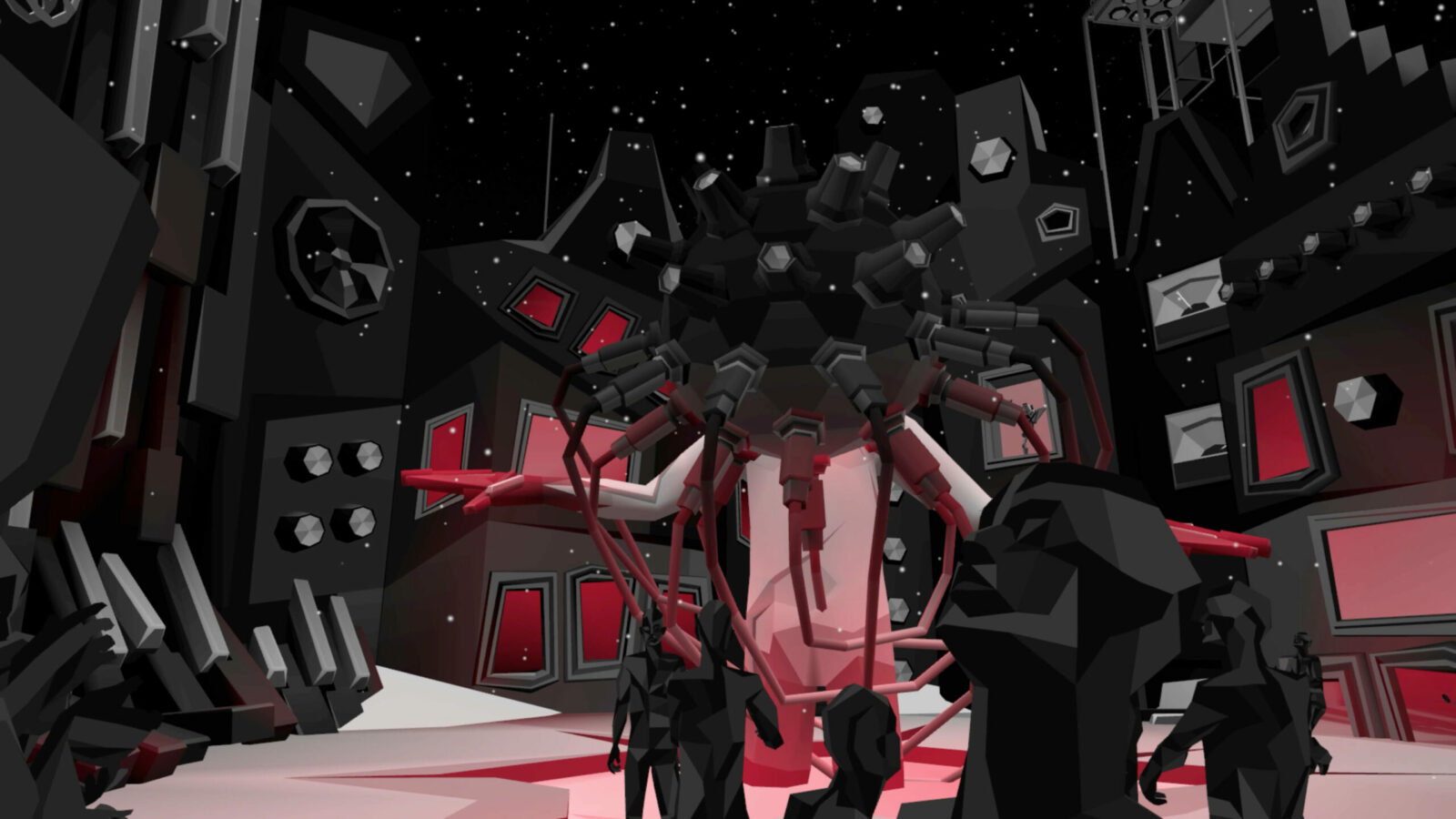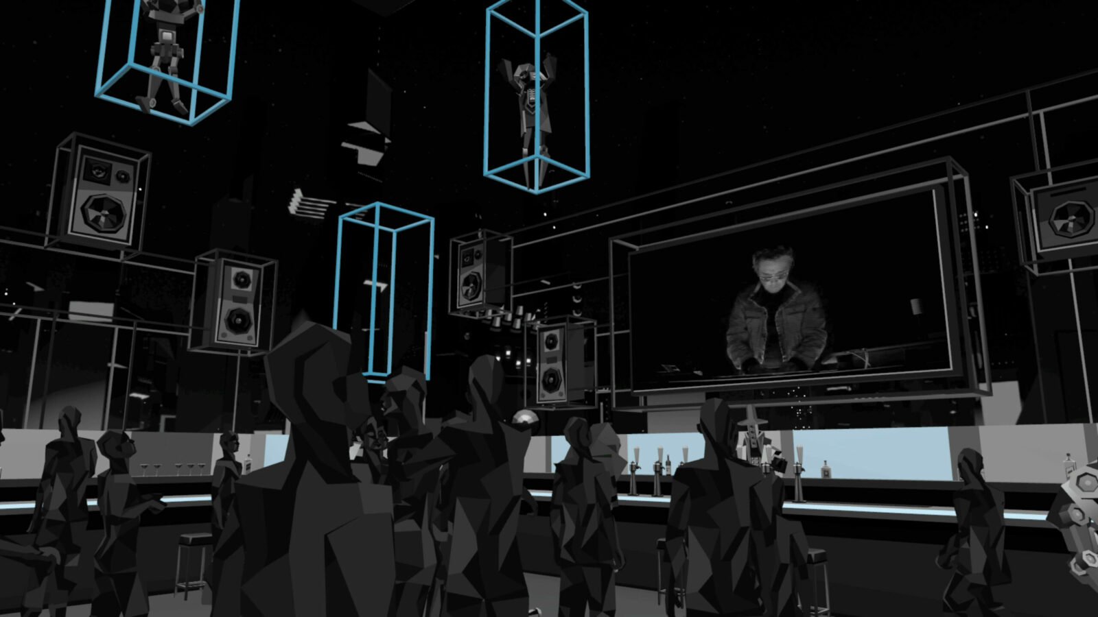 Ограничение VRChat на 25 одновременных пользователей в локации вылечили созданием восьми копий районов. Если в какой-либо параллельной копии оставалось слишком мало людей для ощущения коллективного погружения в контент, администратор незаметно перераспределял их по другим копиям, сохраняя запланированный эффект.